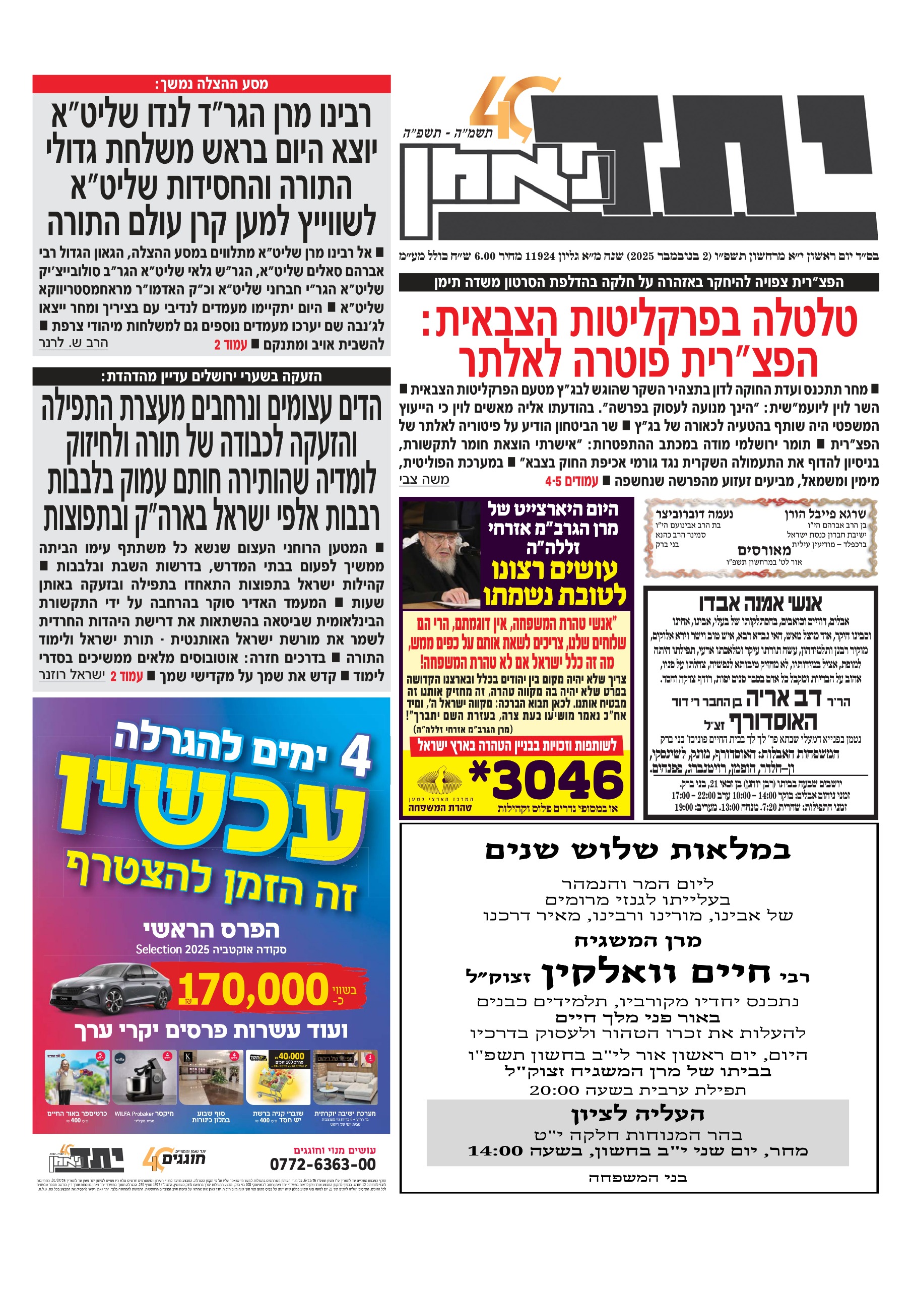• צפו בכותרות העיתונים החרדים לבוקר יום שישי