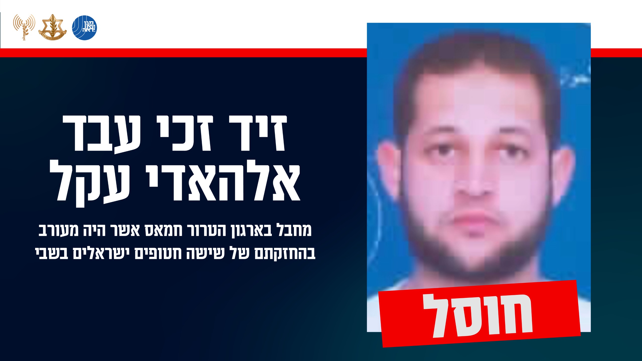 בתקיפה משותפת של צה”ל ושב”כ בהובלת פיקוד הדרום ובאמצעות חיל האוויר ב-29 באוקטובר 2025, חוסל המחבל זיד זכי עבד אלהאדי עקל, אשר היה אחראי להחזקתם של שישה חטופים ישראלים בשבי חמאס.