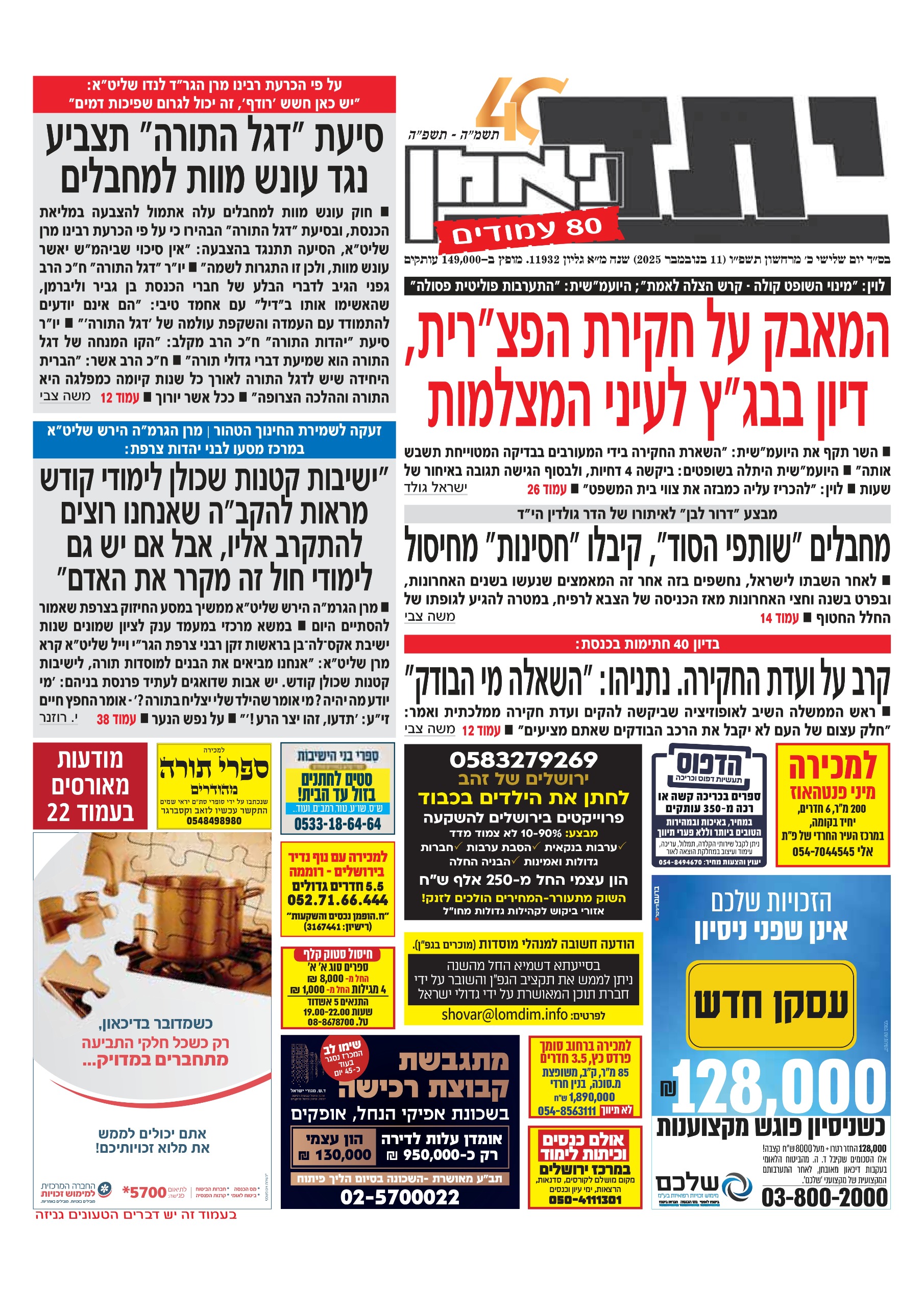 צפו בכותרות העיתונים החרדים לבוקר יום חמישי