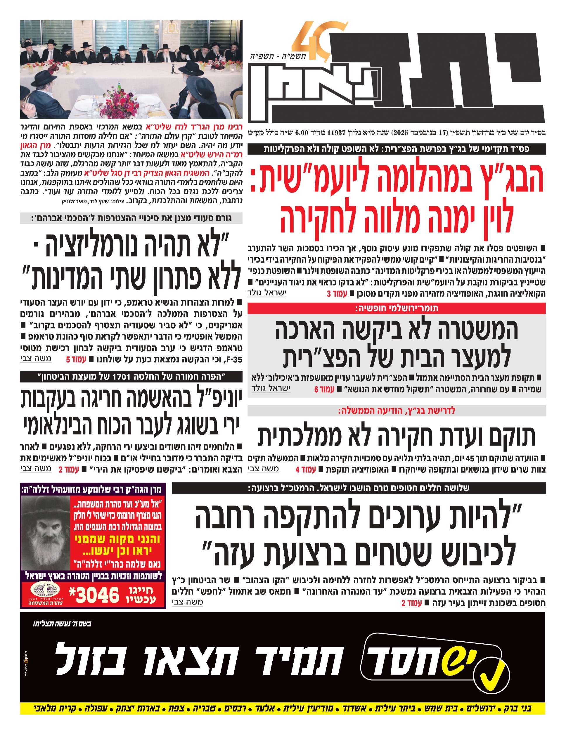 צפו בכותרות העיתונים החרדים לבוקר יום חמישי