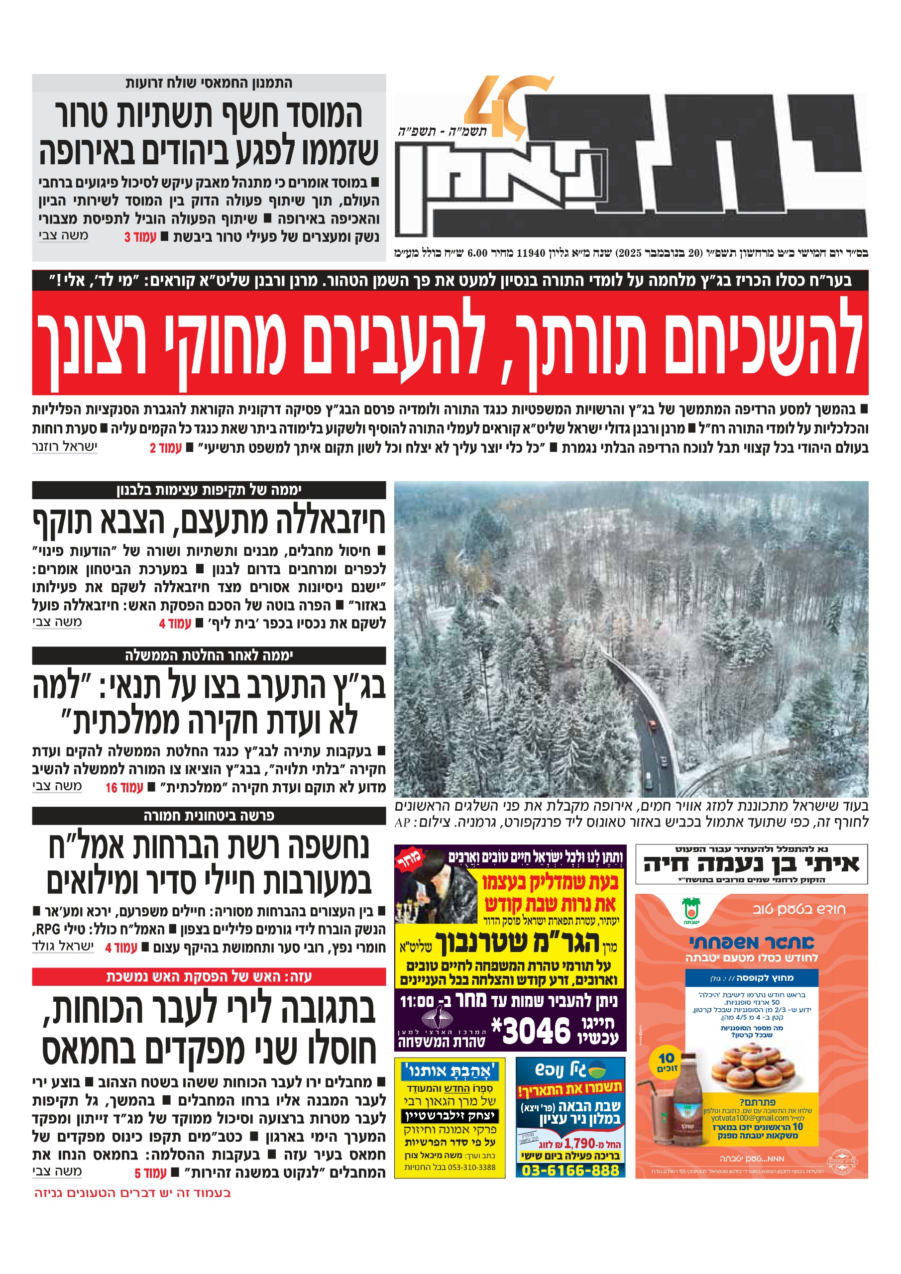 צפו בכותרות העיתונים החרדים לבוקר יום חמישי