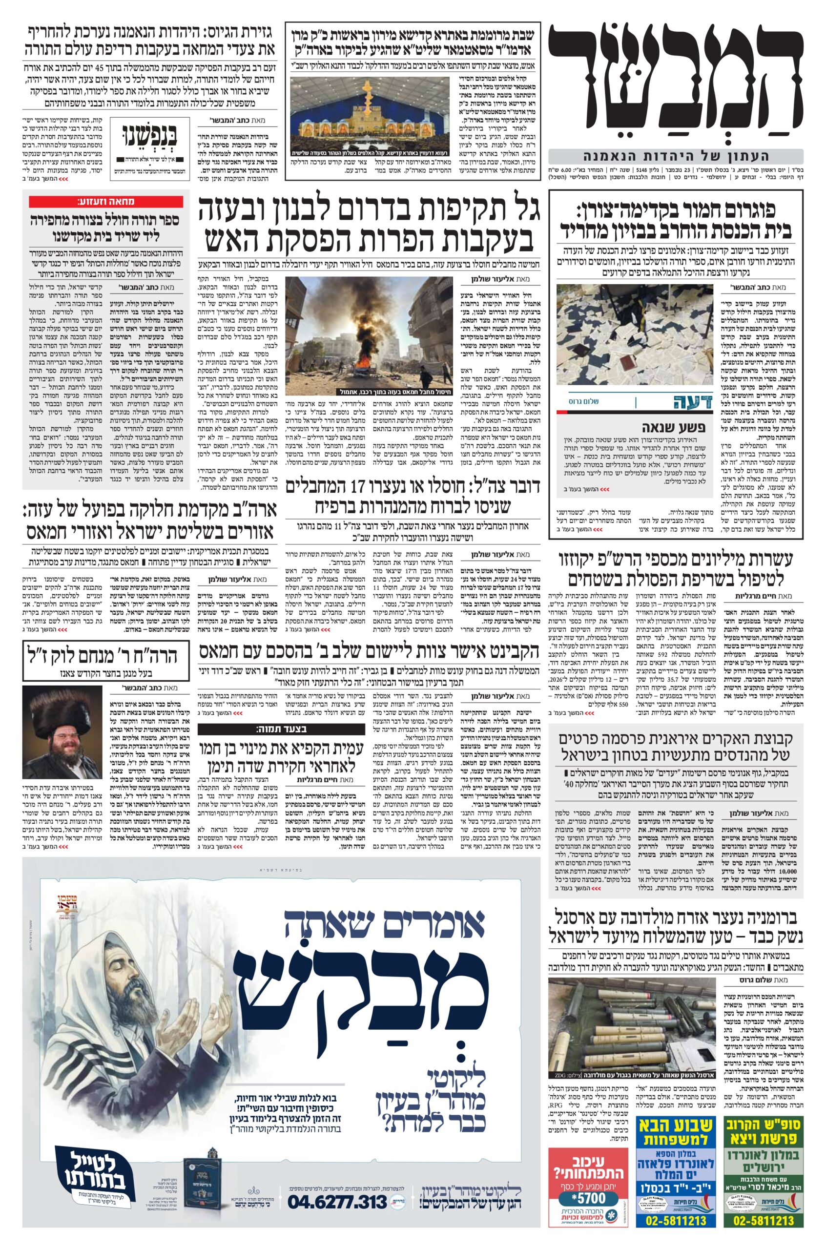 צפו בכותרות העיתונים החרדים לבוקר יום שישי