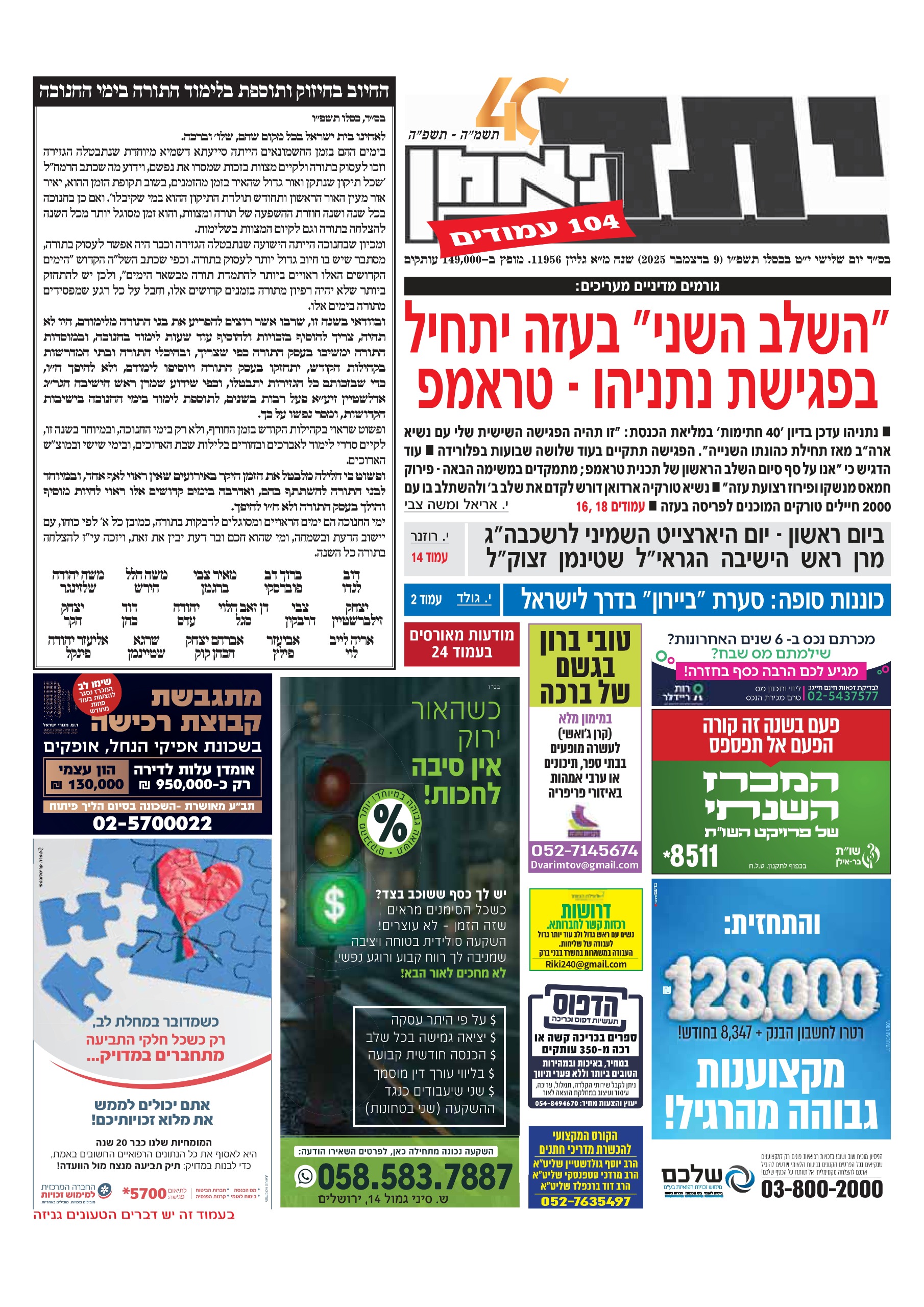 צפו בכותרות העיתונים החרדים לבוקר יום שלישי