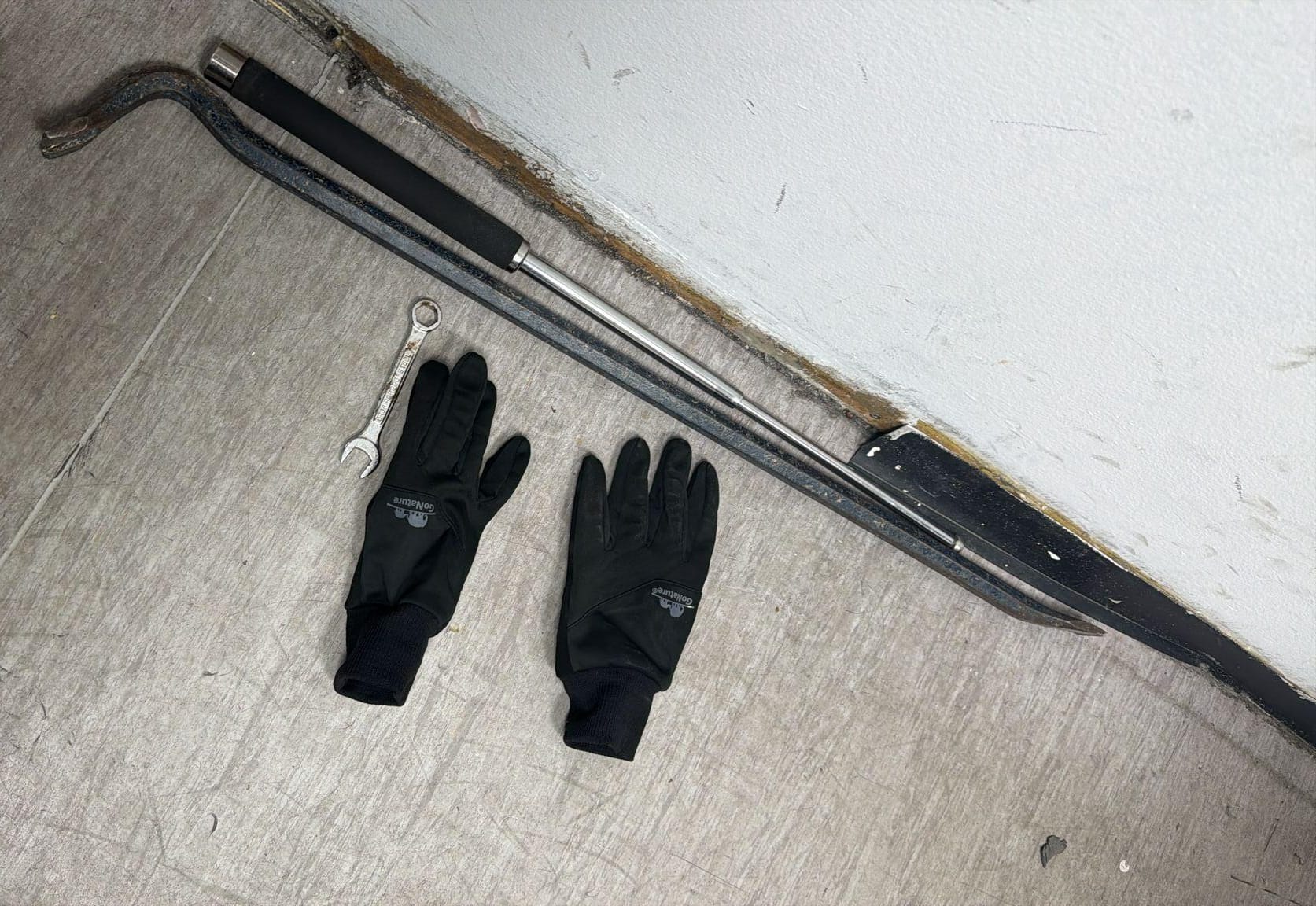 שוטרי ופקחי יחידת שיטור עירוני בני ברק עצרו הלילה חשוד שפרץ לבית ספר בבני ברק ותפסו ברשותו לום ברזל, אלה מתקפלת וכפפות