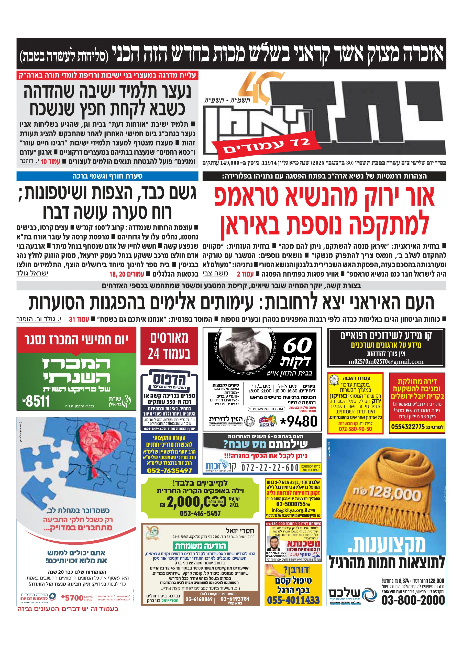 צפו בכותרות העיתונים החרדים לבוקר יום שלישי