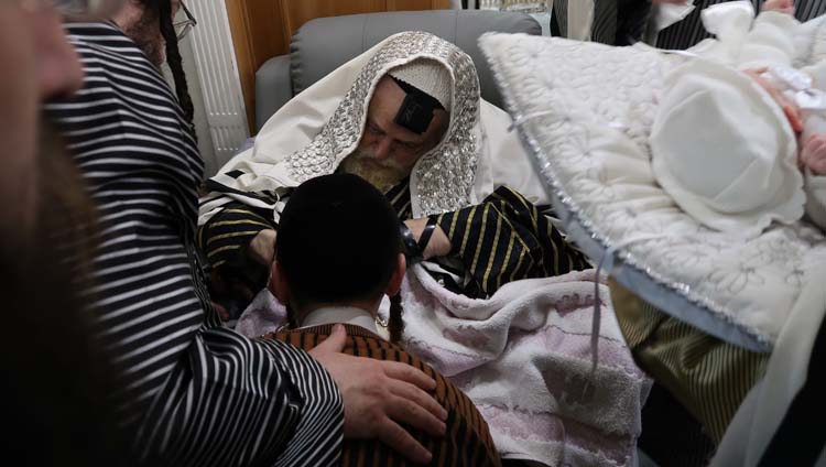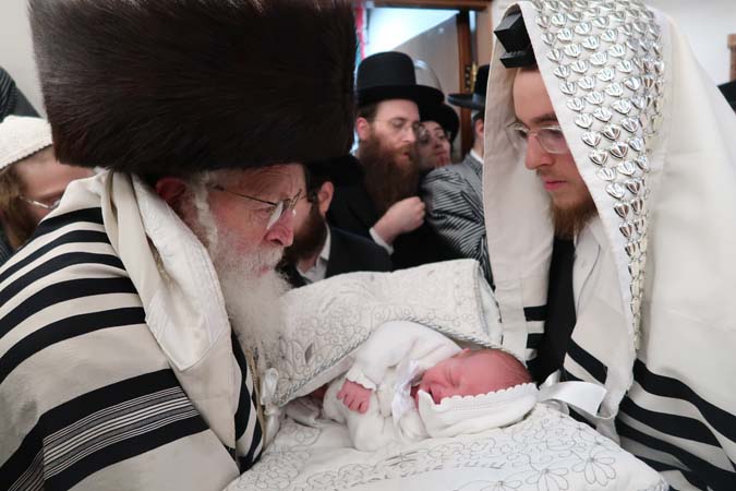 שמחת הברית לנין הגה''ח ר' אהרון סאמט שליט''א דומ''ץ דקהל תוא''י והעדה''ח בן לנכדו הרה''ח ר' שמואל ורשנר שליט''א אצל כ''ק מרן האדמו''ר מתולדות אברהם יצחק שליט''א.
