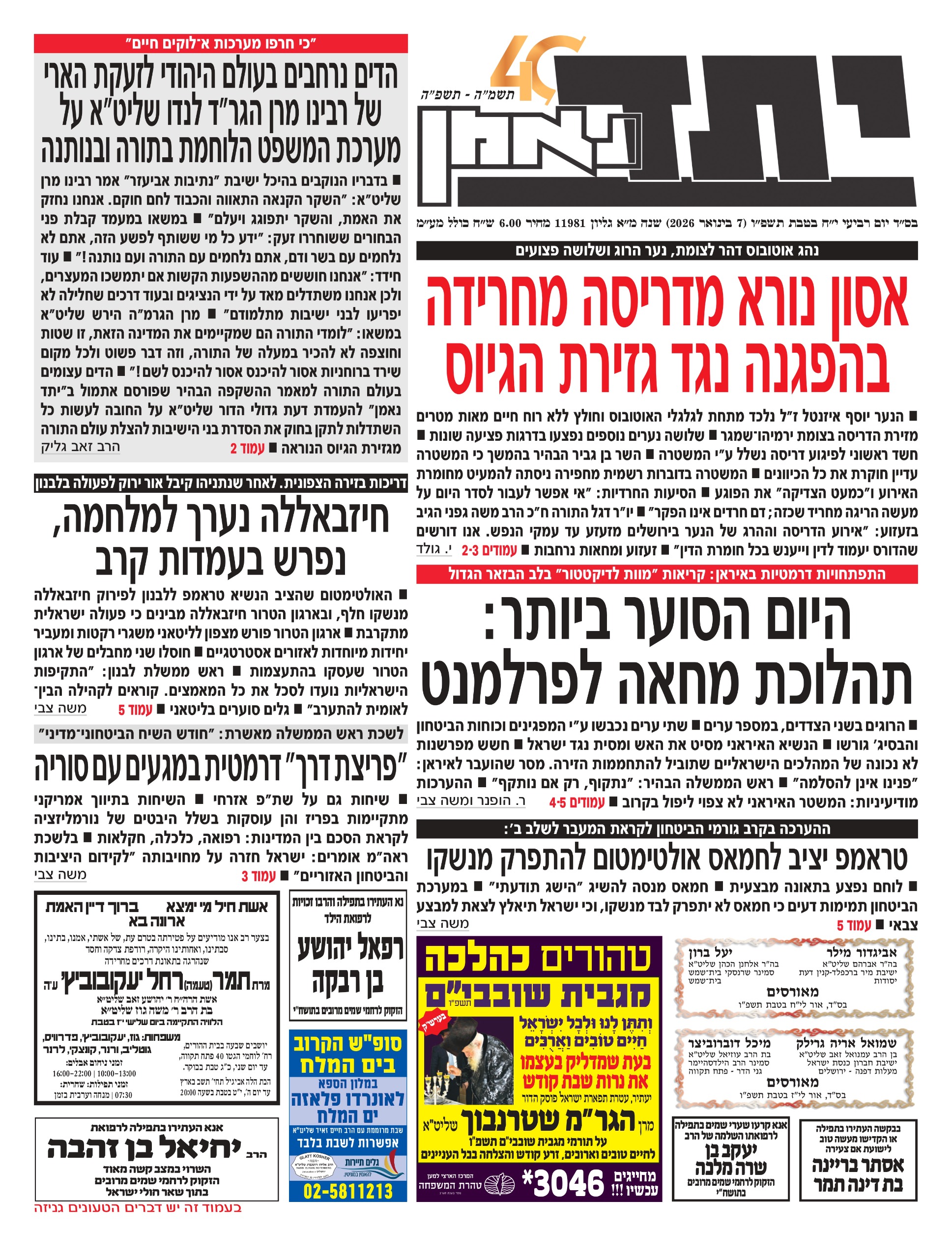 צפו בכותרות העיתונים החרדים לבוקר יום ראשון