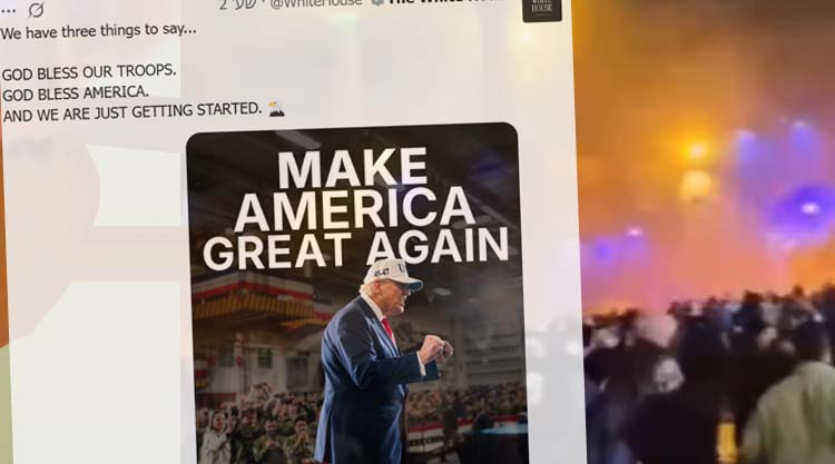 האם ארה”ב בדרך לטפל באיראן? הלילה (ראשון) בחשבון הטוויטר של הבית הלבן נכתב: “יש לנו שלושה דברים לומר… שאלוקים יברך את חיילינו. שאלוקים יברך את אמריקה. ואנחנו רק בתחילת הדרך”, ותחת הכיתוב הזה הוצבה תמונתו של הנשיא טראמפ עם הכיתוב “להפוך את אמריקה לגדולה שוב” – סיסמת הבחירות שעימה הוביל את הקמפיין.