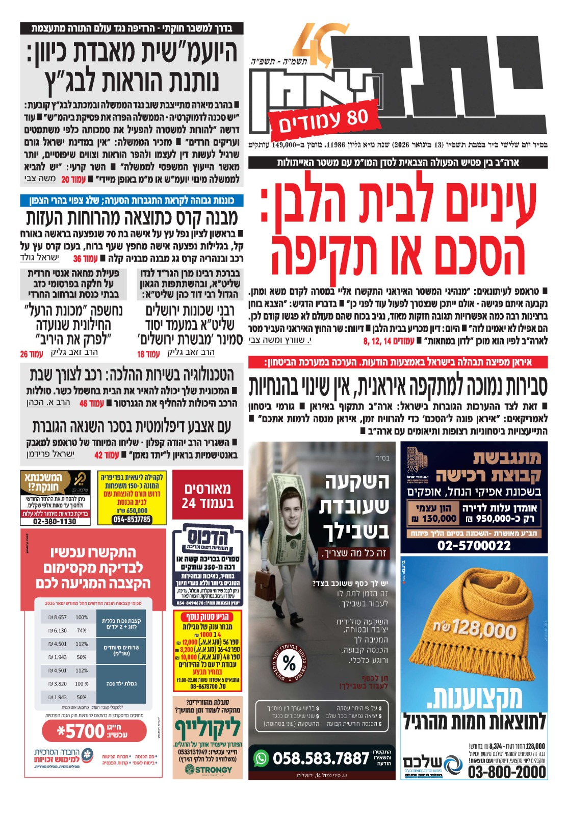 • צפו בכותרות העיתונים החרדים לבוקר יום שני
