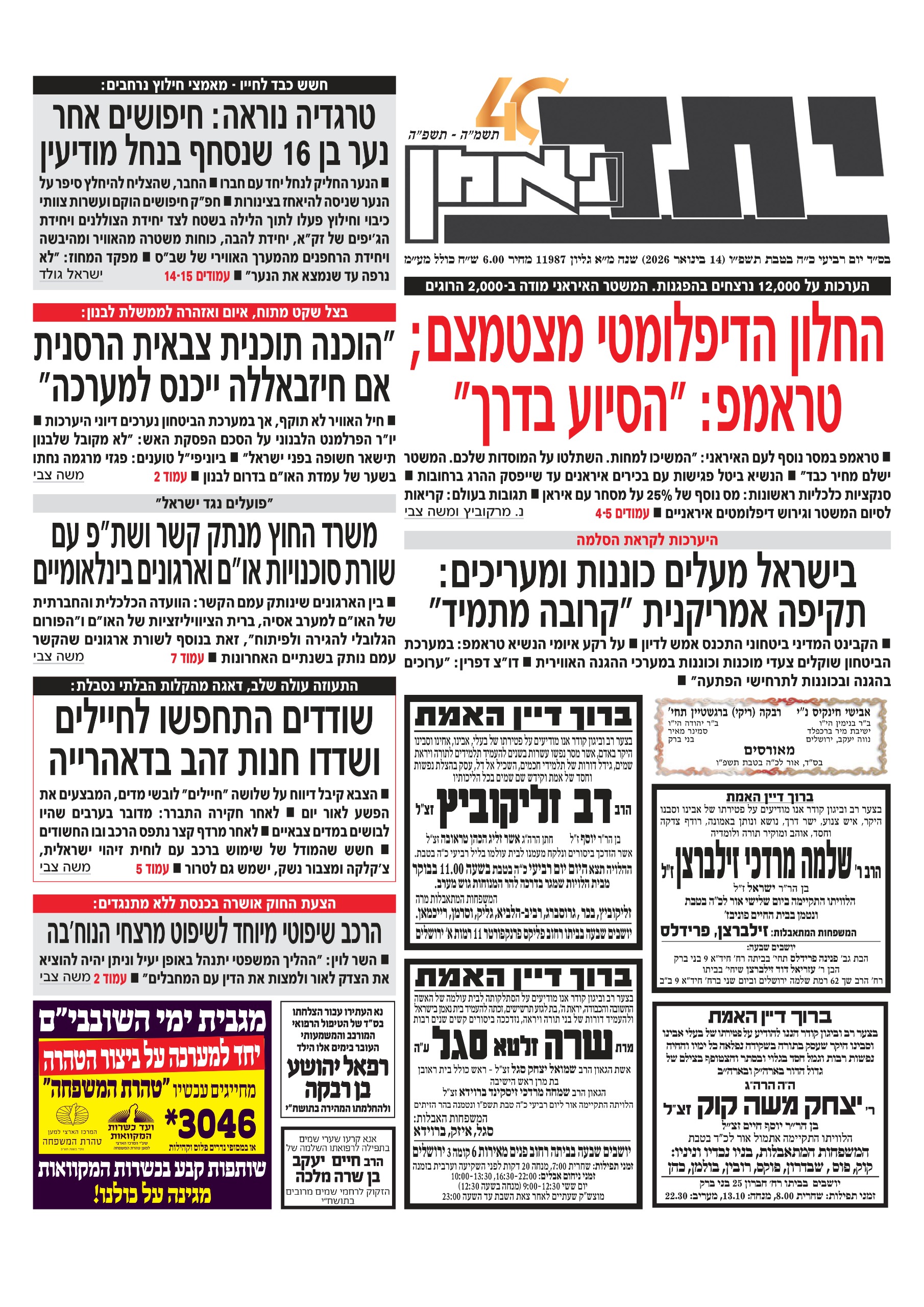 יום רביעי, ינואר 14, 2026