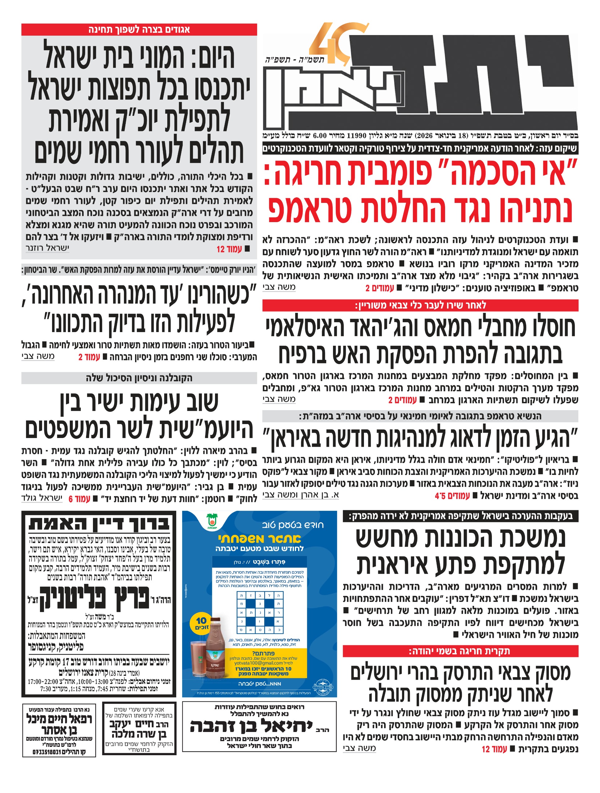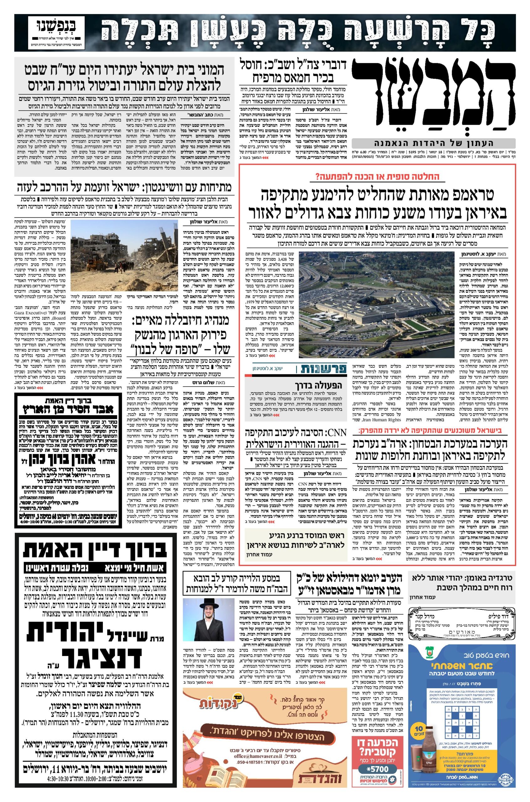 • צפו בכותרות העיתונים החרדים לבוקר יום ראשון