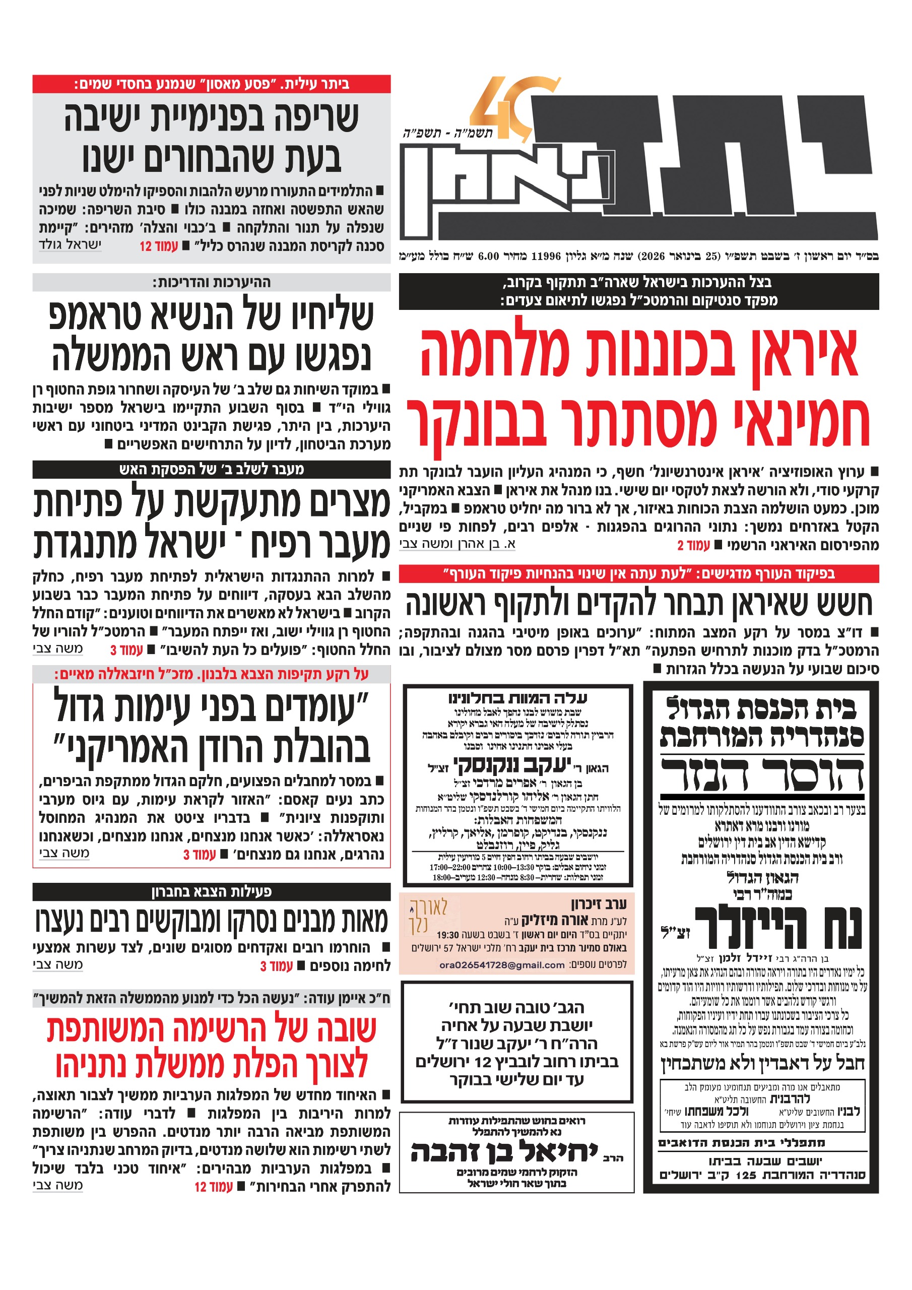 • צפו בכותרות העיתונים החרדים לבוקר יום ראשון