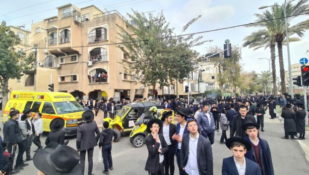 צוותים גדולים של מגן דוד אדום, בהם ניידות טיפול נמרץ, אמבולנסים, אופנועי חירום, אוטובוסים לטיפול נמרץ וחוליות עזרה ראשונה פרוסים בבני ברק כחלק מהאבטחה הרפואית