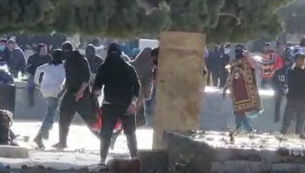 חלק ממפרי הסדר והמתפרעים האלימים מתבצרים בתוך המסגד תוך קריאות הסתה והתפרעויות אלימות הכולל ידוי אבנים בלתי פוסק לעבר השוטרים – מצב שלא מאפשר למתפללים מוסלמים לקיים את תפילות יום השישי השני של הרמדאן ובכך הם פוגעים בציבור גדול של מוסלמים המבקש להגיע במהלך היום לתפילות בהר הבית.