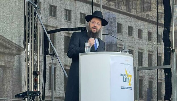“כאן, במקום הזה, היה מקור החושך והרוע. דווקא פה, אנחנו עומדים יחד ואומרים עם ישראל חי!” – כך הכריז הערב, רבה של ברלין, הרב יהודה טייכטל, בנאום אמונה מיוחד בשער בנדרבורג – ששימש כסמל לכוחם של הנאצים בימי החושך הארורים של השואה האיומה.