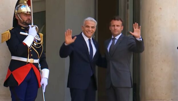 בהמשך נסע לפיד לארמון האליזה בפריז, שם התקבל על ידי הנשיא מקרון, והשניים ייצאו לעיתונאים לפני תחילת הפגישה והצהירו הצהרות.