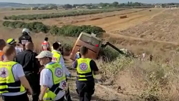 חובש רפואת חרום במד”א ליפא הירש, סיפר: “הגענו למקום עם כוחות גדולים, ראינו את האוטובוס נוטה על צידו בשדה בצד הדרך, הנהג יצא מהחלון והנוסעים ישבו באוטובוס , הם בהכרה מלאה וללא פציעות שנראות לעין, אנחנו מסייעים להם לצאת מהאוטובוס ומבצעים במקום מיון ראשוני לוודא מי זקוק לטיפול רפואי ופינוי להמשך בדיקות בבית החולים.”
