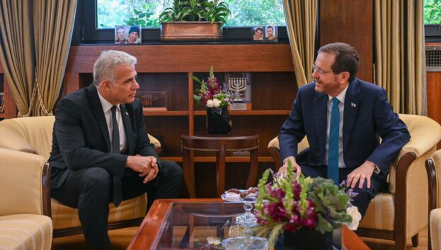 “אני עובד בשיתוף פעולה מלא עם ראש הממשלה לפיד, באמון מלא. אנחנו פועלים למען מדינת ישראל ולמען העם היהודי. אנחנו משתפים פעולה, ואיפה שאני אוכל לסייע אני אסייע”.