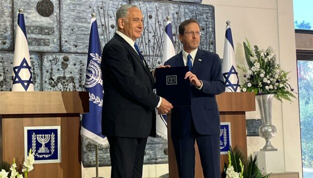 נשיא המדינה יצחק הרצוג, הטיל היום (ראשון) את מלאכת הרכבת הממשלה על חבר הכנסת בנימין נתניהו בבית הנשיא.