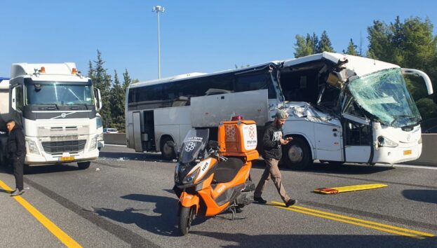 תאונה קשה אירע הבוקר בשעה 09:34 בכביש ירושלים – ת”א בין אוטובוס למשאית. ממד”א נמסר כי התקבל דיווח במוקד 101 של מד”א במרחב איילון על תאונת דרכים בין אוטובוס עם נוסעים למשאית בכביש 1 סמוך למחלף לטרון. חובשים ופראמדיקים של מד”א מעניקים במקום טיפול רפואי למספר פצועים בהם, ילדה כבת 10 במצב קשה.