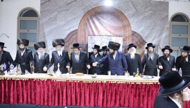 שמחת האירוסין לבת האדמו"ר מטשאקווא בית שמש, נינת האדמו"ר מנאראל, נכדת בנו הגר"ז שפירא ראש כולל נאראל חתן האדמו"ר מנדבורנה זצ"ל, עם בן הגר"א