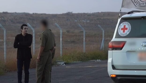 ארגון הטרור חמאס שחרר הערב (שני) את החייל החטוף עידן אלכסנדר לידי נציגי הצלב האדום, כשמחבלי חמאס נמנעים מהטקסים המאפיינים אותם בשחרור חטופים, אולם לא נמנעו מצילום תמונה של מחבלי חמאס כשהם רעולים פנים ולצידם עידן אלכסנדר מעובר לנציגי הצלב האדום, כשעל צווארו תעודת שחרור.