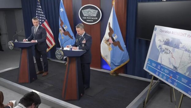 שר ההגנה פיט הגסת’ ויו”ר המטות המשולבים של חיל האוויר, גנרל דן קיין, מקיימים בשעה זו תדרוך לעיתונאים בפנטגון.