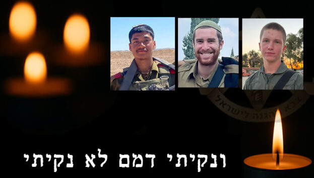 הלילה (שני) הותר לפרסום שמם של שלושה חיילי צה”ל שנהרגו בצהרים בצפון רצועת עזה. השלושה: סמל ראשון שהם מנחם הי”ד בן 21, ממושב ירדנה. סמל שלמה יקיר שרם הי”ד בן 20, מאפרת, וסמל יולי פקטור הי”ד בן 19, מראשון לציון, שלושתם לוחמי שריון בגדוד 52, עוצבת ‘עקבות הברזל׳ יהי זכרם ברוך. מבאירוע הקשה נפצעו עוד מספר חיילים ביניהם קצין באורח קשה.