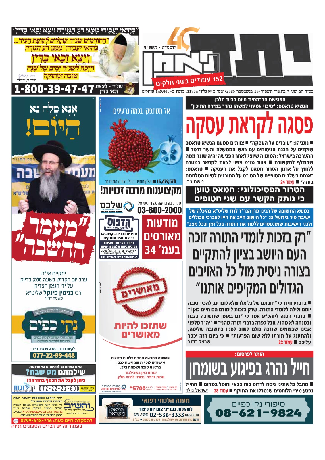 צפו בכותרות העיתונים החרדים לבוקר יום שני
